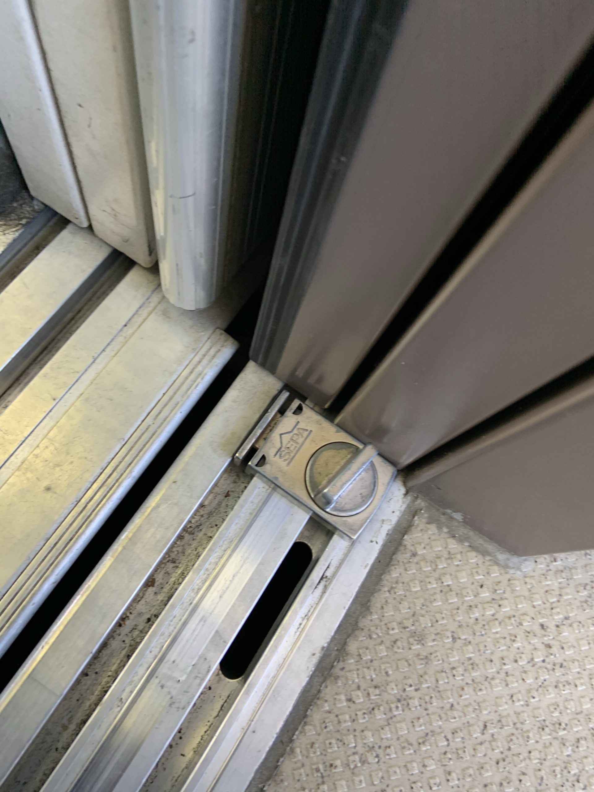 ドアが全閉しないようにストッパーをかける必要がありますが、おすすめは100均などでも売っている、ウィンドウロックです。防犯グッツの窓の鍵を開けられても、ドアが開かないようにするあれです。